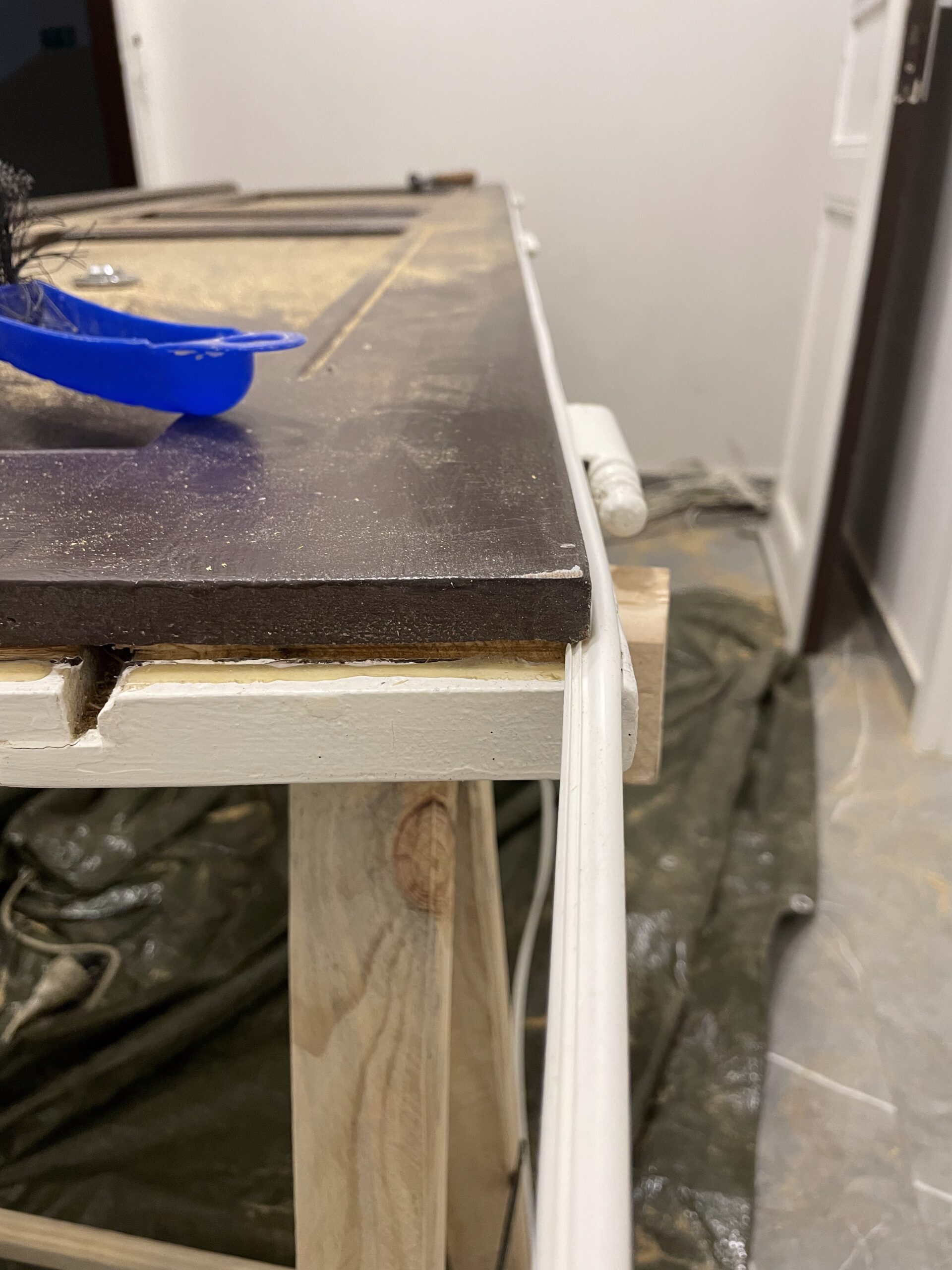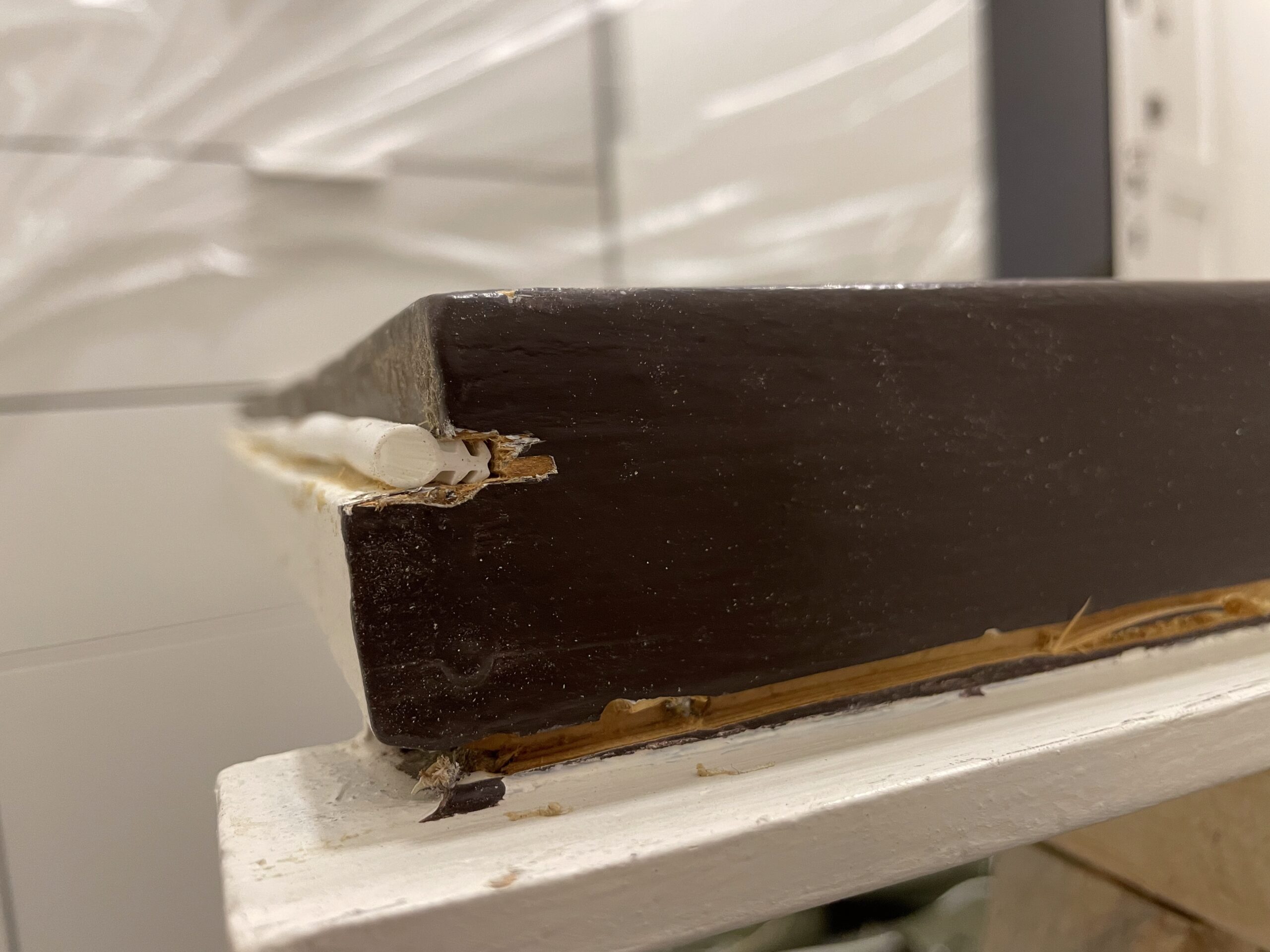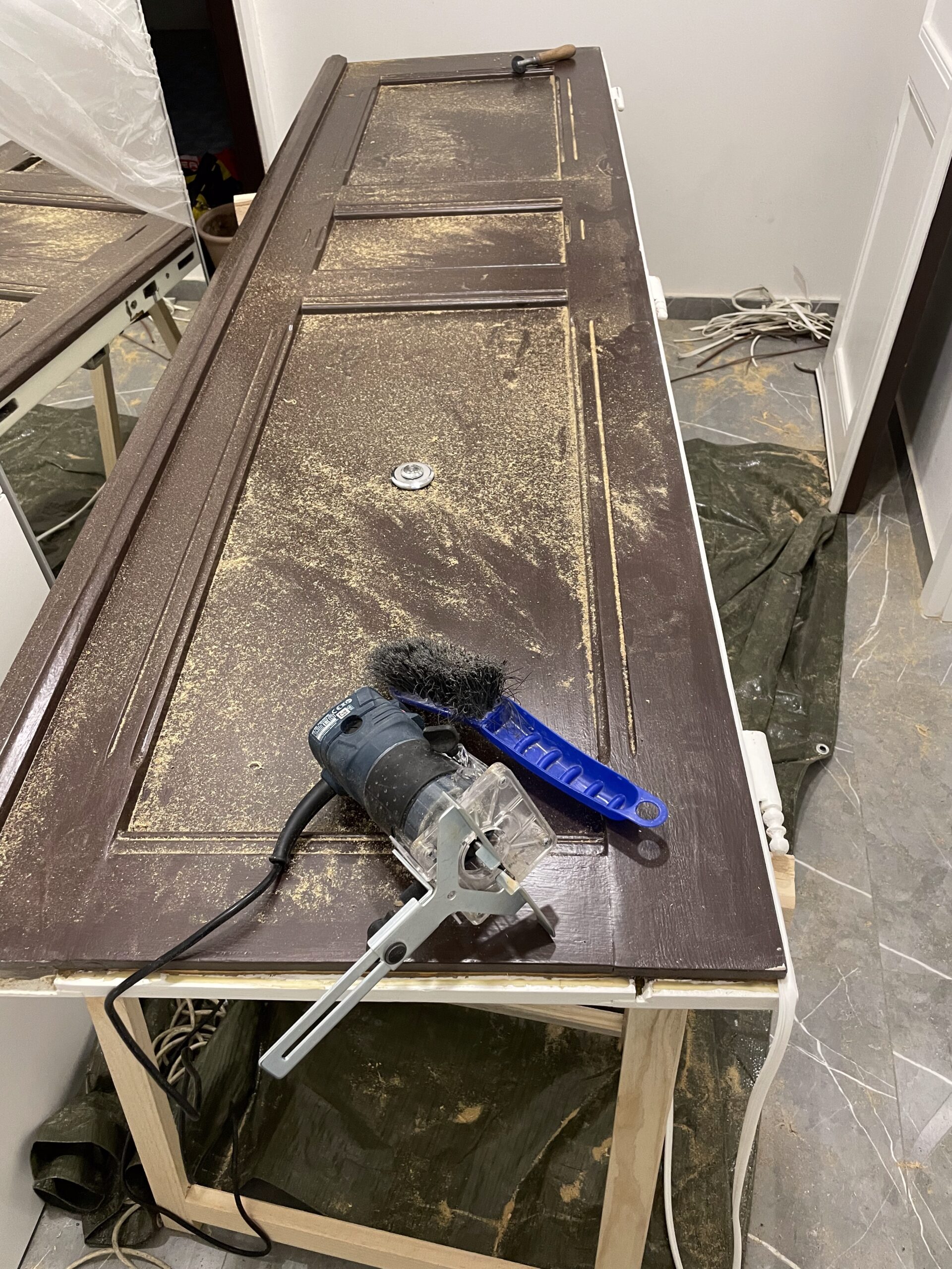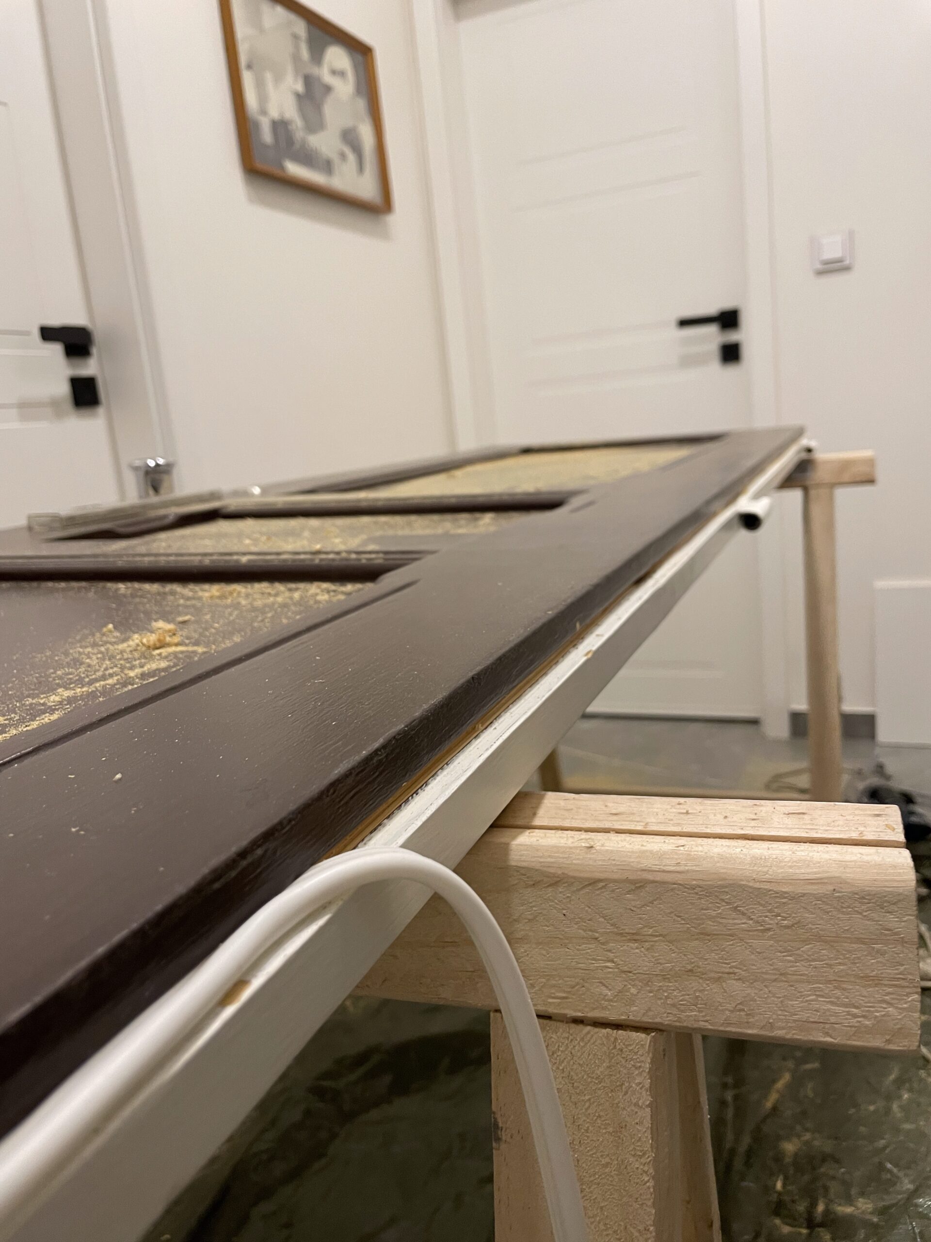U této zakázky jsme prováděli opravu dřevěných dveří po mechanickém poškození a dlouhodobém opotřebení. Dveře vykazovaly poškození hran a zhoršenou funkčnost uzavíracího mechanismu.